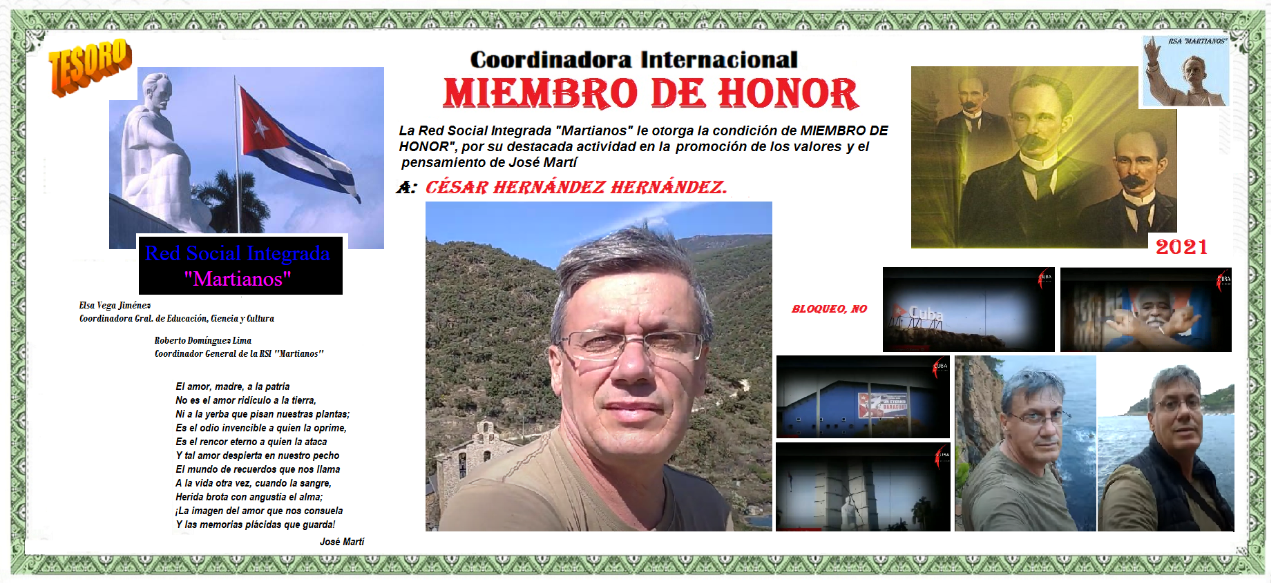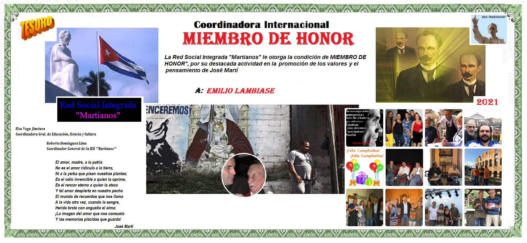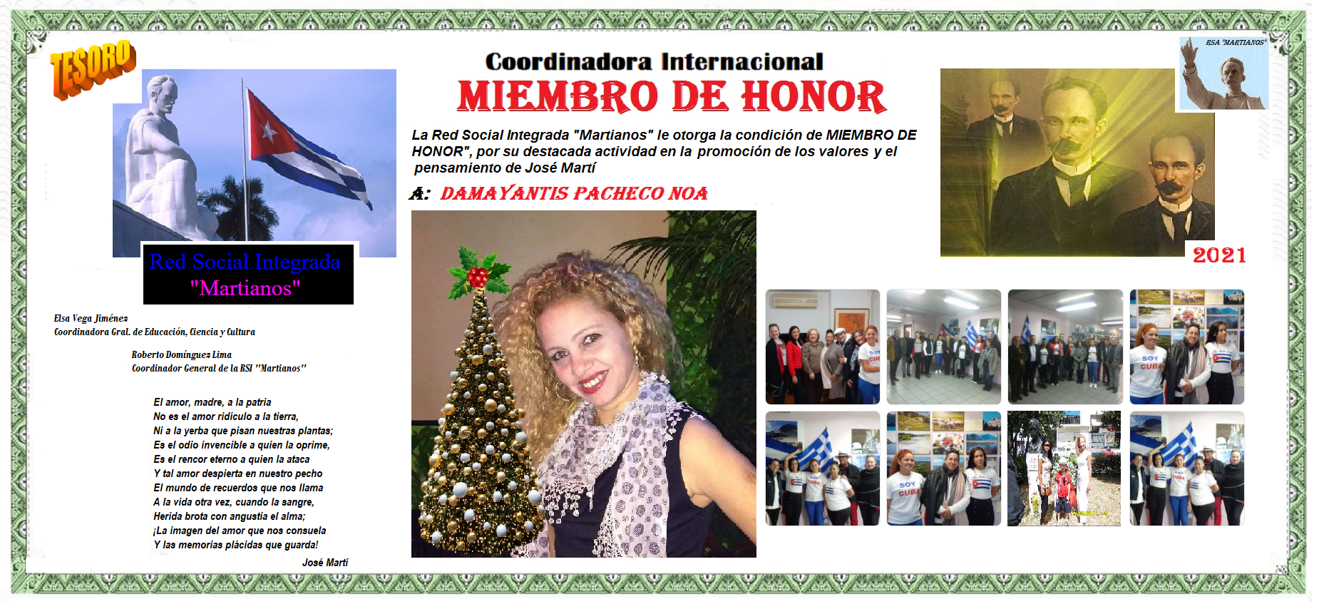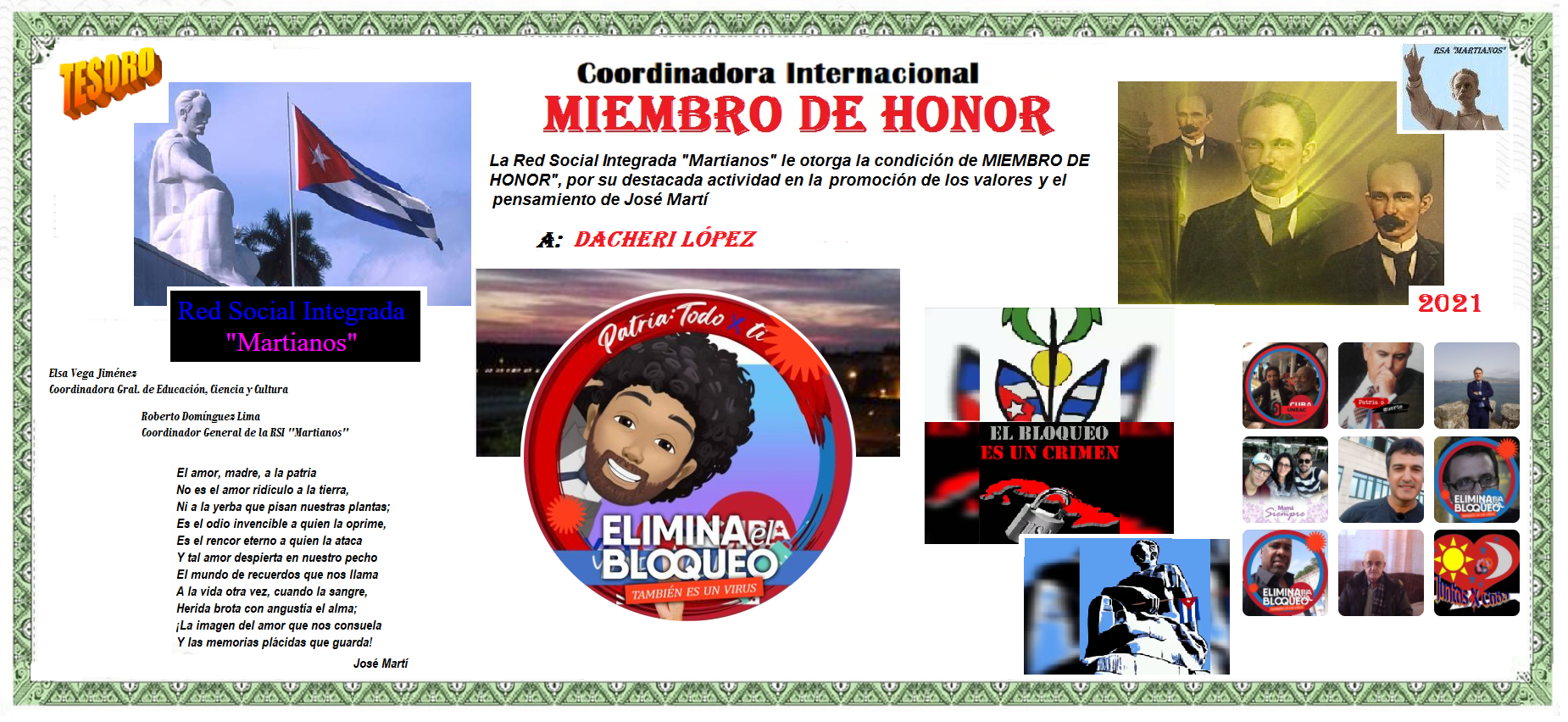 Hoy continuamos con la publicación de aquellas personas que también están recibiendo -en el presente año- la mencionada categoría de Miembro de honor de la Red Social Integrada Martianos.