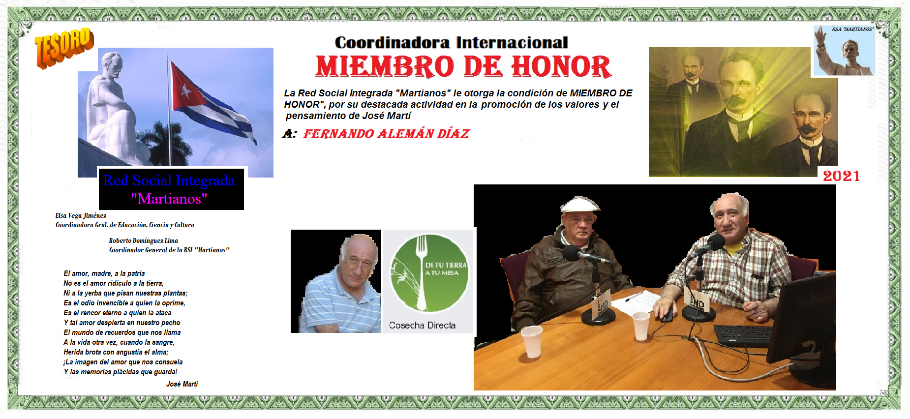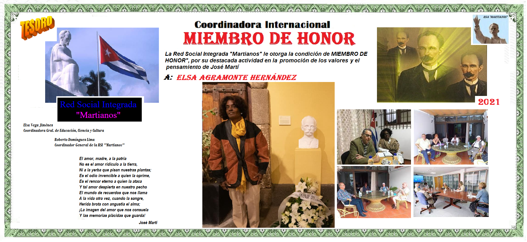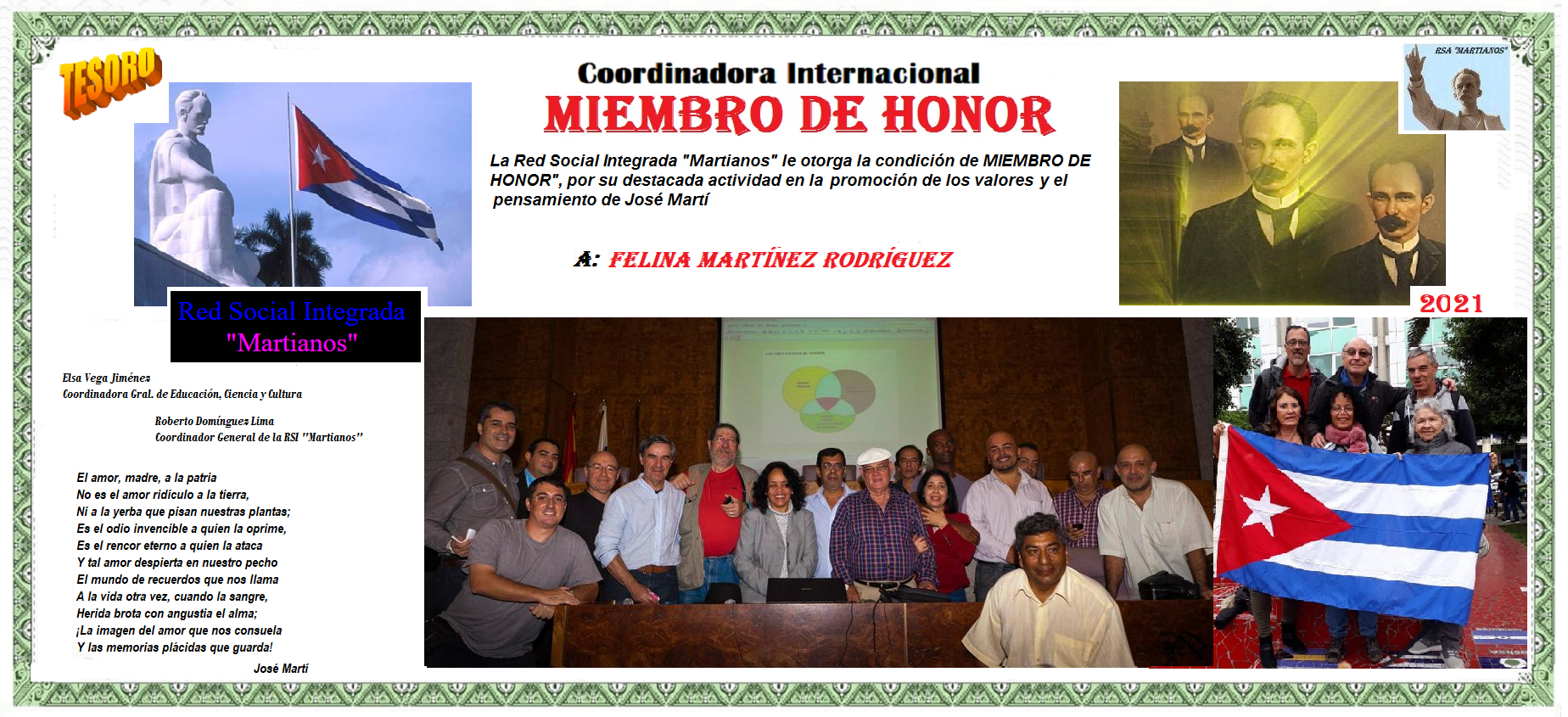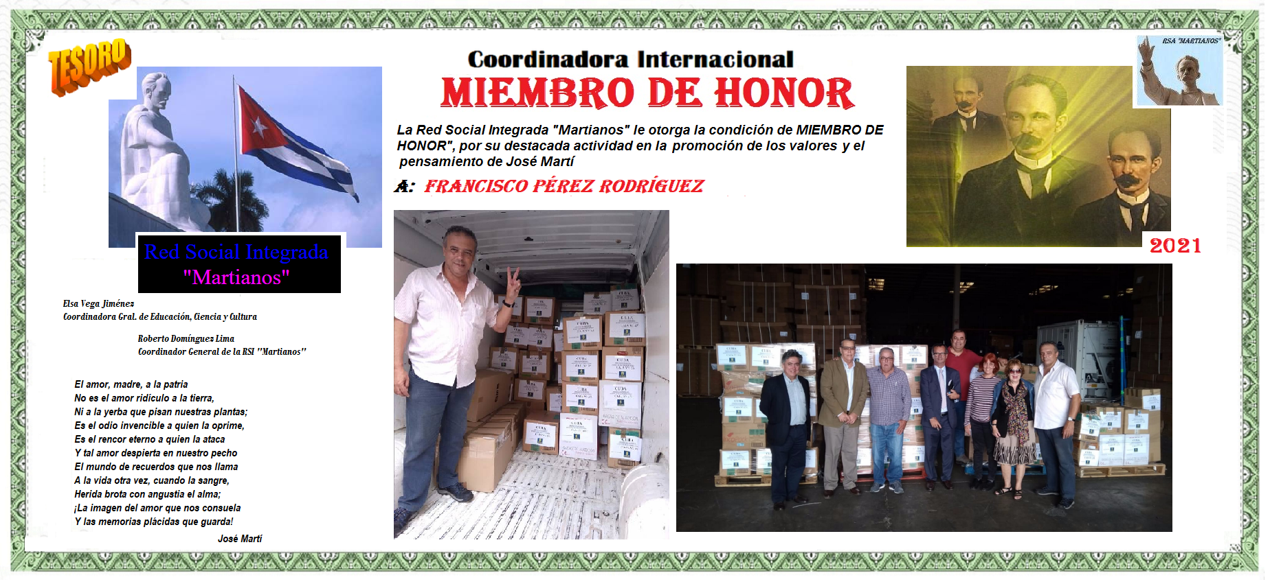 Hoy continuamos con la publicación de aquellas personas que también están recibiendo -en el presente año- la mencionada categoría de Miembro de honor de la Red Social Integrada Martianos.