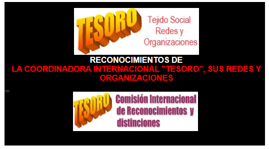 La Coordinadora Internacional TESORO ha querido felicitar -a través de su Coordinador General y de la Secretaría Ejecutiva- a todas las personas que han recibido este estímulo moral en el presente año y los ha exhortado a continuar desarrollando sus respectivas actividades que obviamente no han escapado a la atención de la ciudadanía en general y a aquellos que les propusieron, en particular.