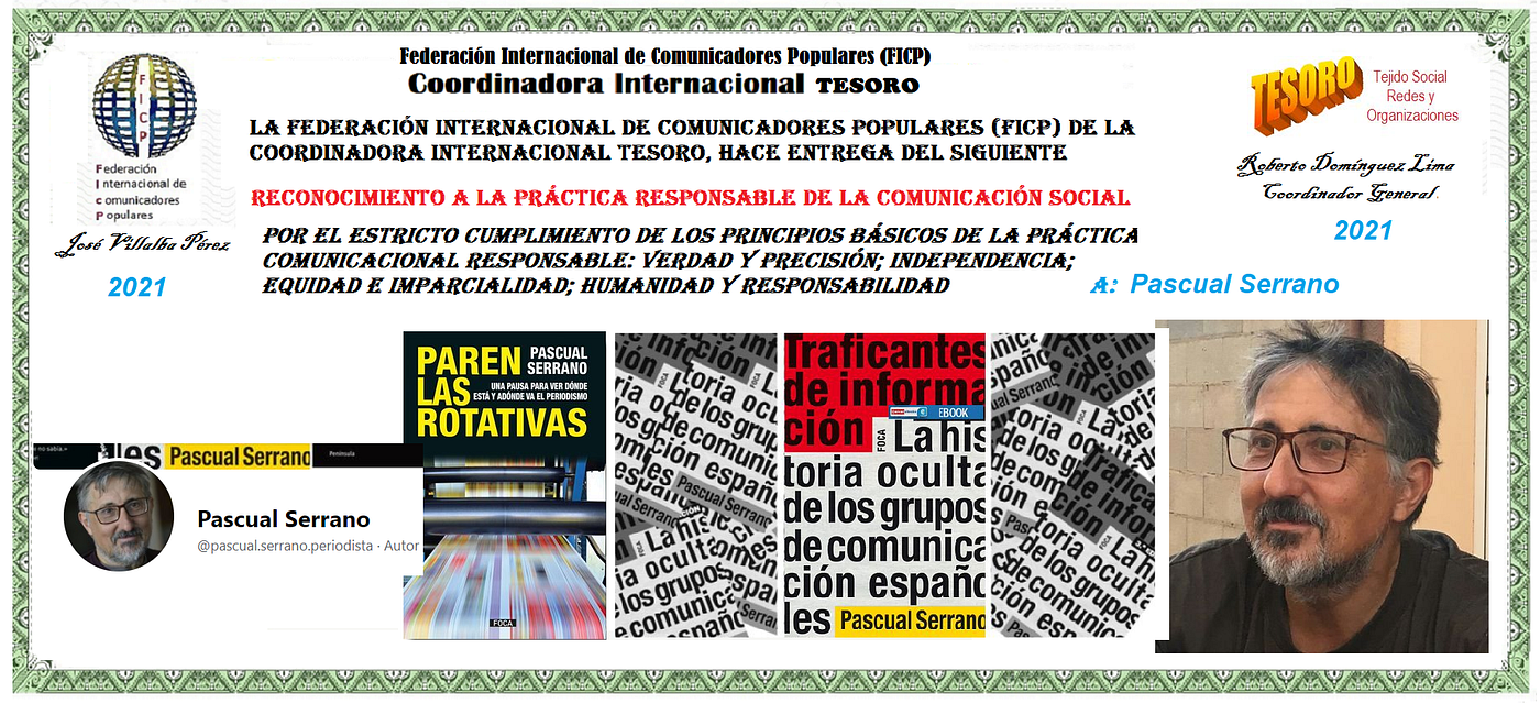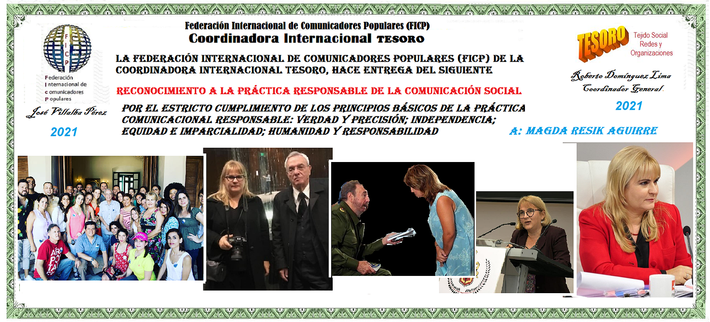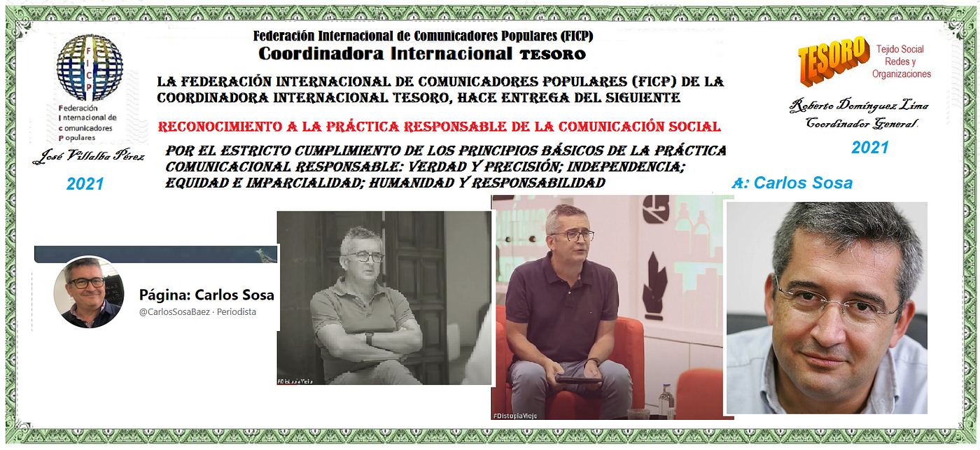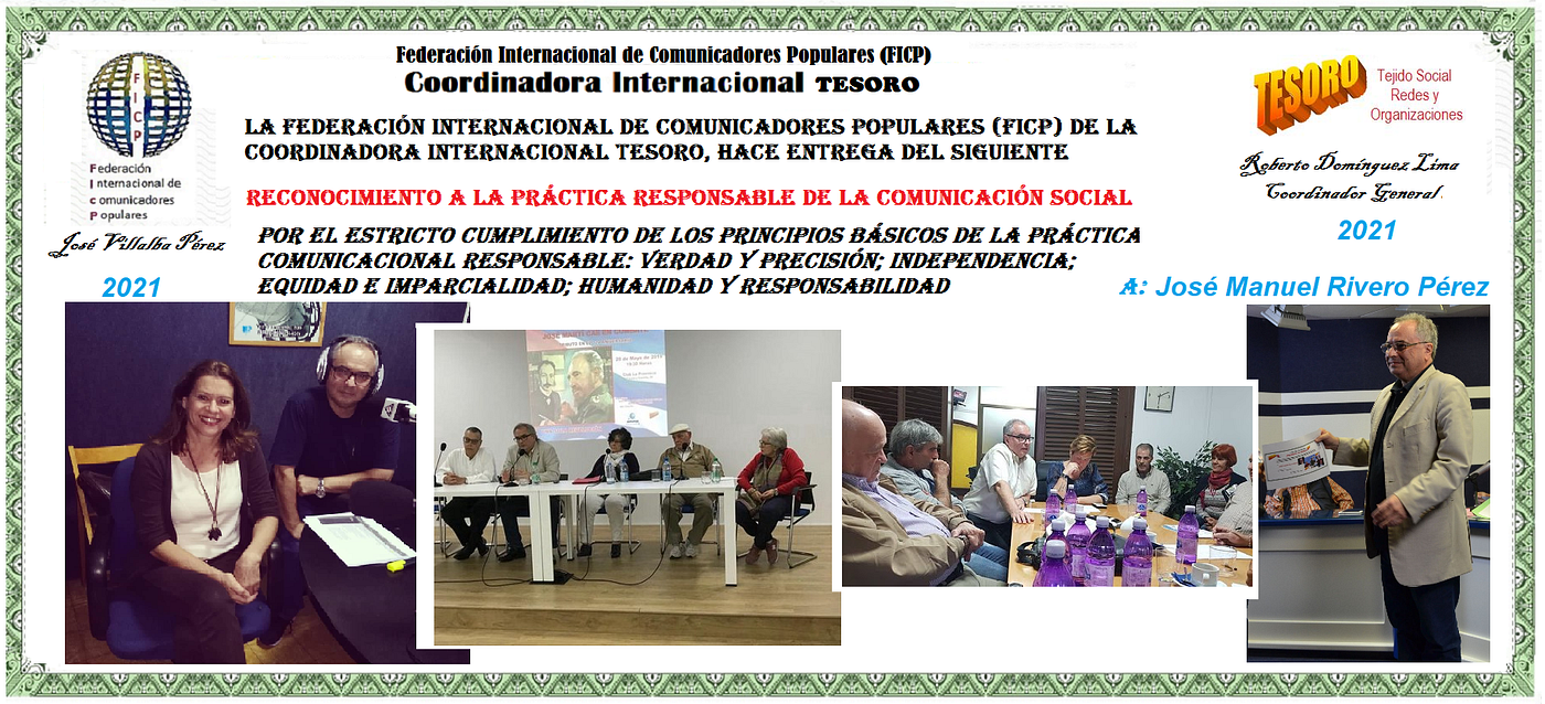 Como en su momento dimos a conocer, la Red Social Integrada HERMES Internacional y la Red de la Federación Internacional de Comunicadores Populares (RedFICP), que desde al año 2015 otorgan anualmente el Reconocimiento a la Práctica Responsable de la Comunicación Social “Por el estricto cumplimiento de los principios básicos de la práctica comunicacional responsable: verdad y precisión; independencia; equidad e imparcialidad; Humanidad y responsabilidad”, recientemente inició el proceso para la concesión de los correspondientes al presente año 2021. Hoy la Secretaría Ejecutiva de TESORO ha informado que dicho proceso acaba de concluir.