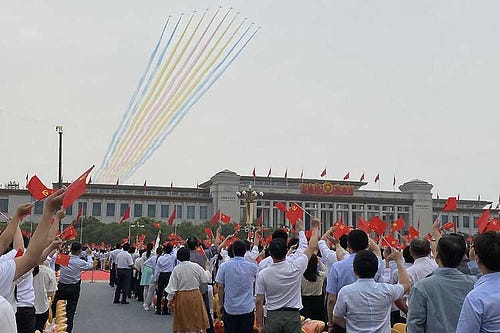 El acto tuvo lugar en la plaza de Tian´anmen, justo en el centro de Beijing, con la asistencia de representantes de todos los sectores de la sociedad e incluyó el saludo de organizaciones juveniles y de otros partidos políticos.