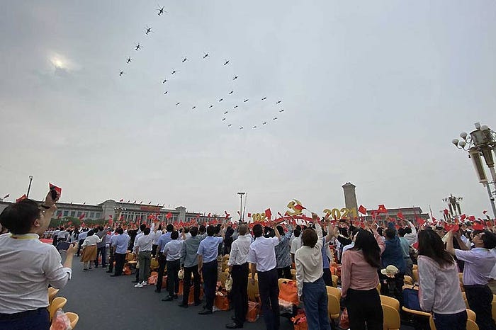 Tal y como estaba previsto -y anunciamos en el día de ayer- en la República Popular China ha tenido lugar el acto por los 100 años de la fundación del Partido Comunista de China (PCCh) y ofrecemos a nuestros amables lectores el discurso del Presidente de China Xi Jinping en el que expresó -según publica TeleSur en su canal de Youtube- que “en la revitalización del país, el Partido Comunista condujo al pueblo en la búsqueda de la preservación de los éxitos. Todo sacrificio y toda creación del Partido ha unido y conducido al pueblo chino durante los últimos 100 años”.