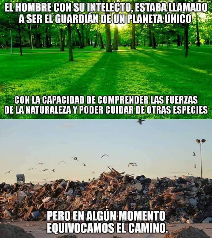 1.- Una persona jocosamente nos recordó aquello de que le llamaban “Medio ambiente”, porque “ya la humanidad inconsciente se había cargado la otra mitad”