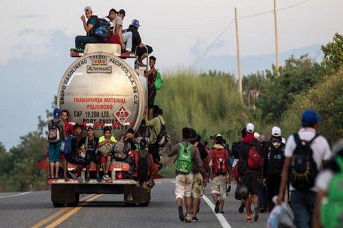 “Hace par de años comenzó un fenómeno nuevo, las llamadas “caravanas migratorias” convocadas sabe Dios cómo, nacidas en San Pedro Sula, Honduras, o en la plaza Salvador del Mundo, en El Salvador, y coordinadas para reunirse en Guatemala y avanzar en bloque hacia el Norte.